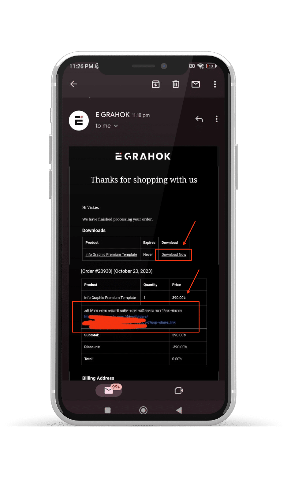 স্টেপ ৩প্রথম ইমেইলটি আপনার অর্ডার ইনফরমেশন নিয়ে থাকবে এবং দ্বিতীয় ইমেইলটি একাউন্ট ক্রিয়েট নিয়ে থাকবে, এই ইমেইলে পাসওয়ার্ড সেট করার জন্য একটি লিংক দেয়া হবে লগিন করার জন্য, যত দ্রুত সম্ভব একটি পাসওয়ার্ড সেট করে নিবেন