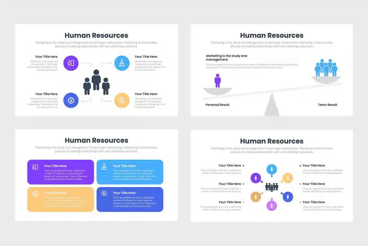 With a creative design that will capture attention without having to sacrifice your precious time, everything is just right where it should be to help you create organized, professional, and clean human resources infographics. With our PowerPoint Slides, Apple Keynote, and Google Slide integration, it’s never been easier to create materials that will hold your employee’s attention and educate them on the topics that matter the most!
